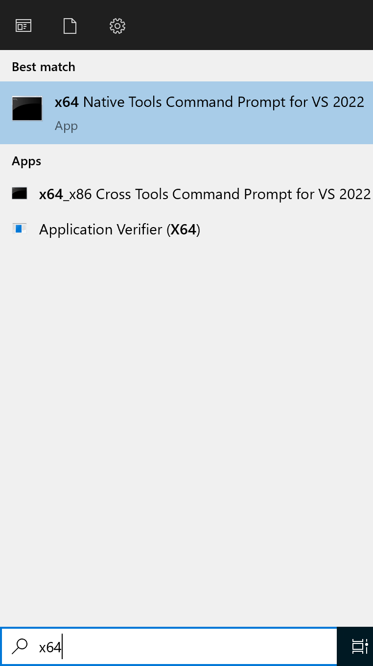 在安装Visual Studio之后,系统会生成一个专门带有VS编译环境的终端,省去了配置很多环境变量。我们在windows搜索中输入x64可以看到