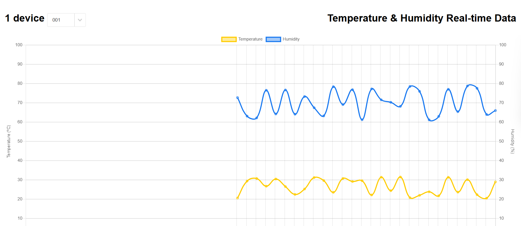 The Git clone URL here can be seen on the main interface of the Deployment Center. During the final push step, enter the credential username and password you just created to complete the deployment. Return to the web app’s Overview interface, click on the Default domain link, and open it to see the real-time sensor data, as shown in the figure: